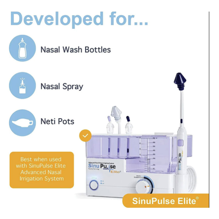Để có kết quả tốt nhất, hãy sử dụng với máy rửa mũi xoang SinuPulse Elite hoặc Traveler.